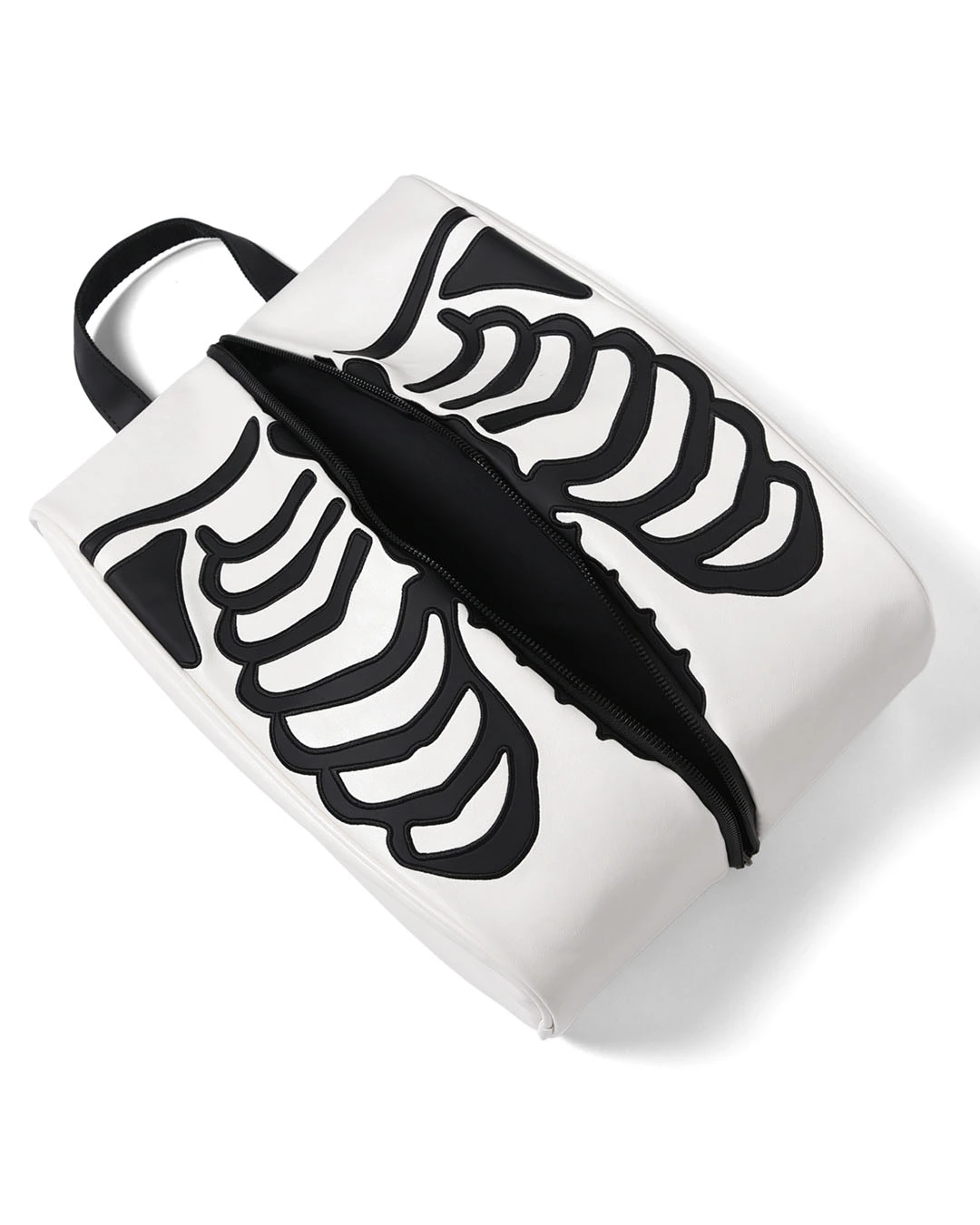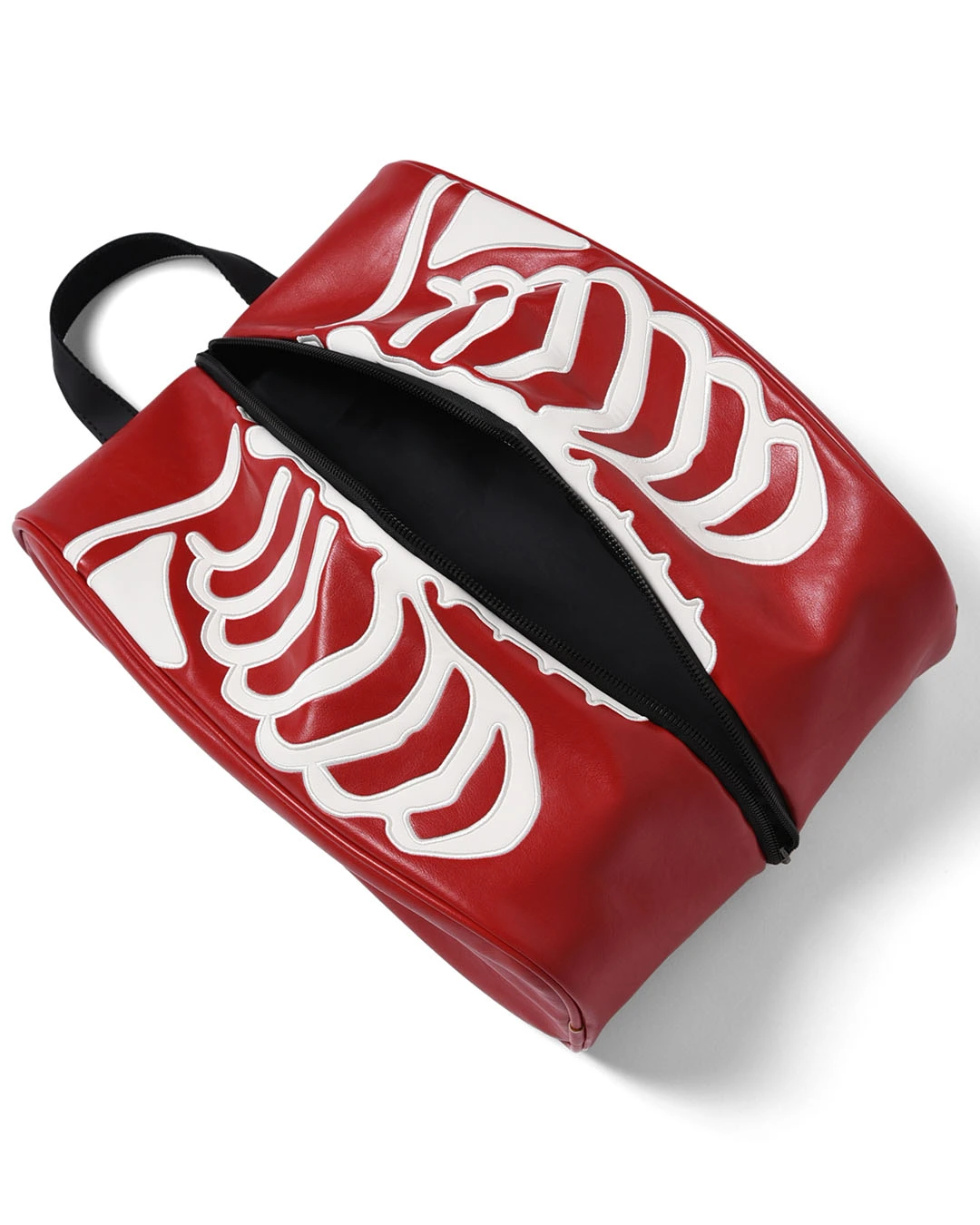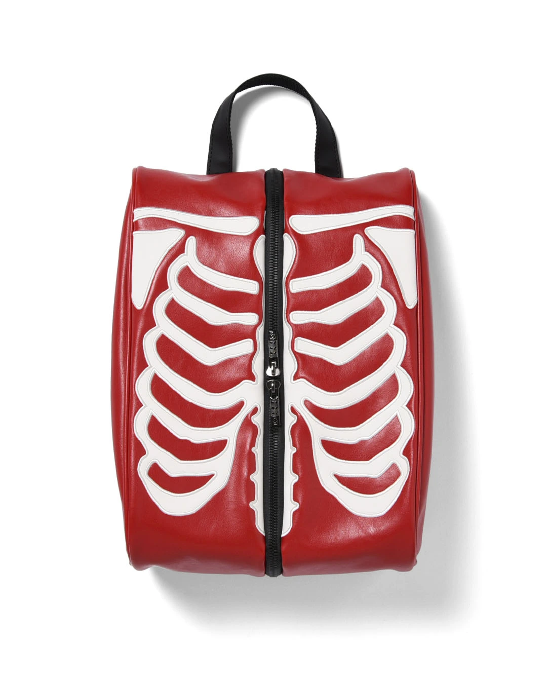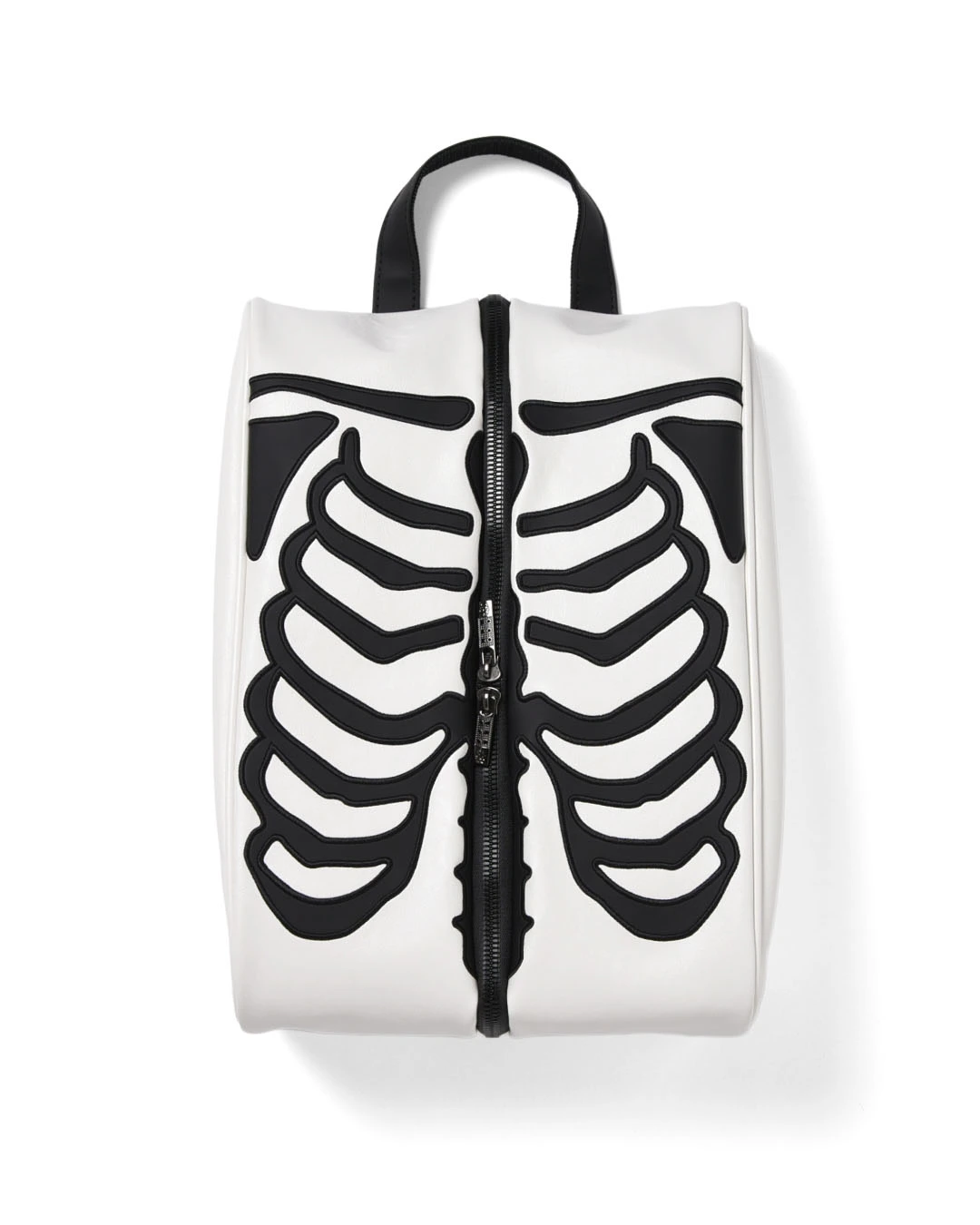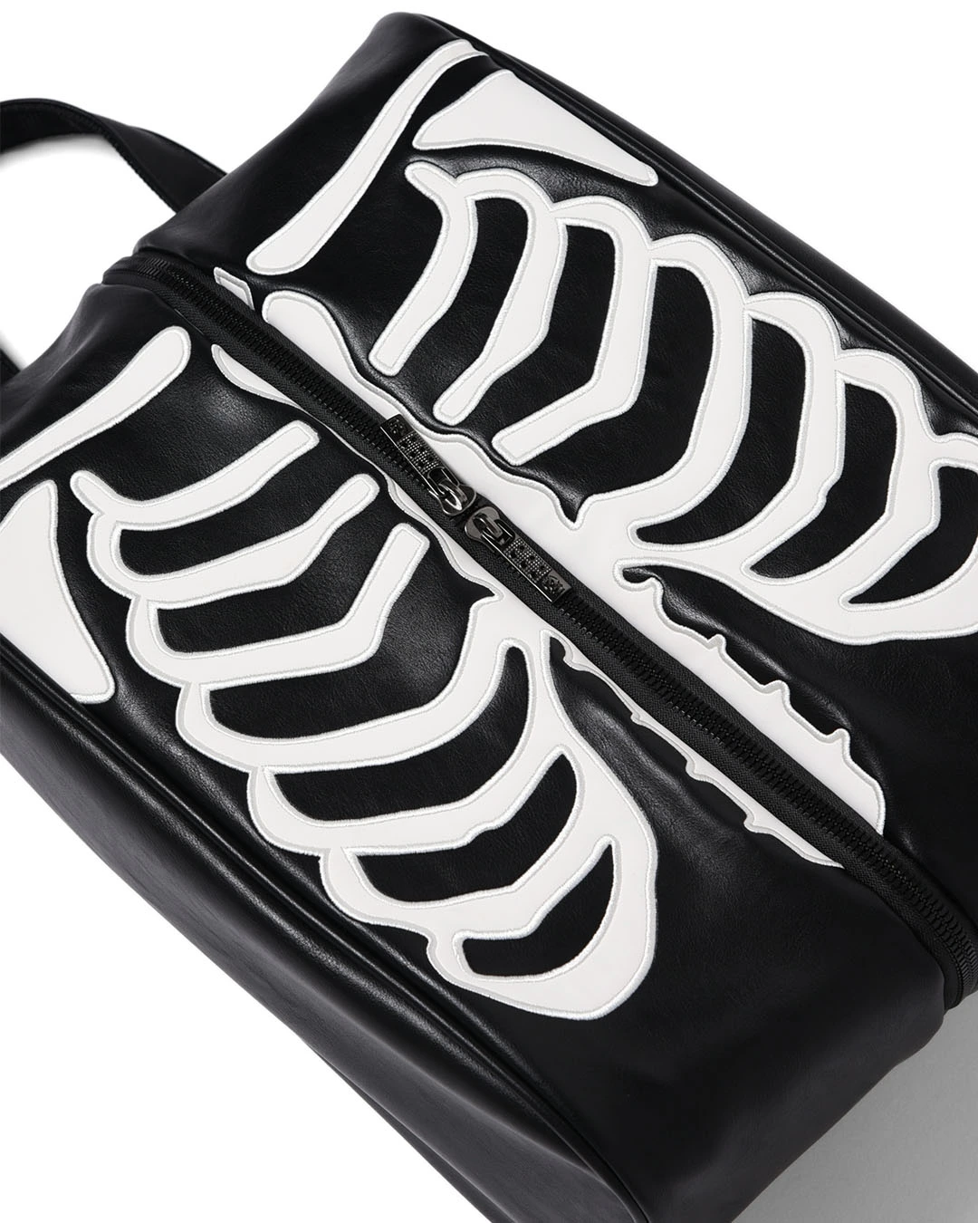 スカルの肋骨が全体にワッペン刺繍で表現されたシューズケース。