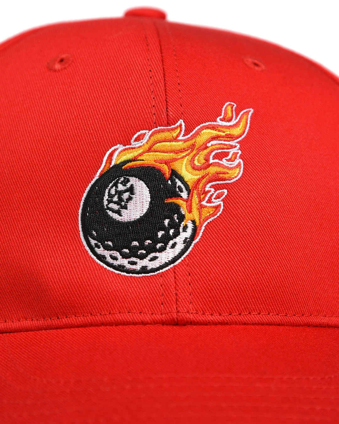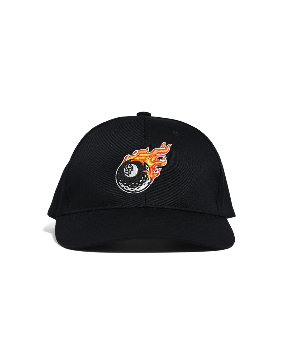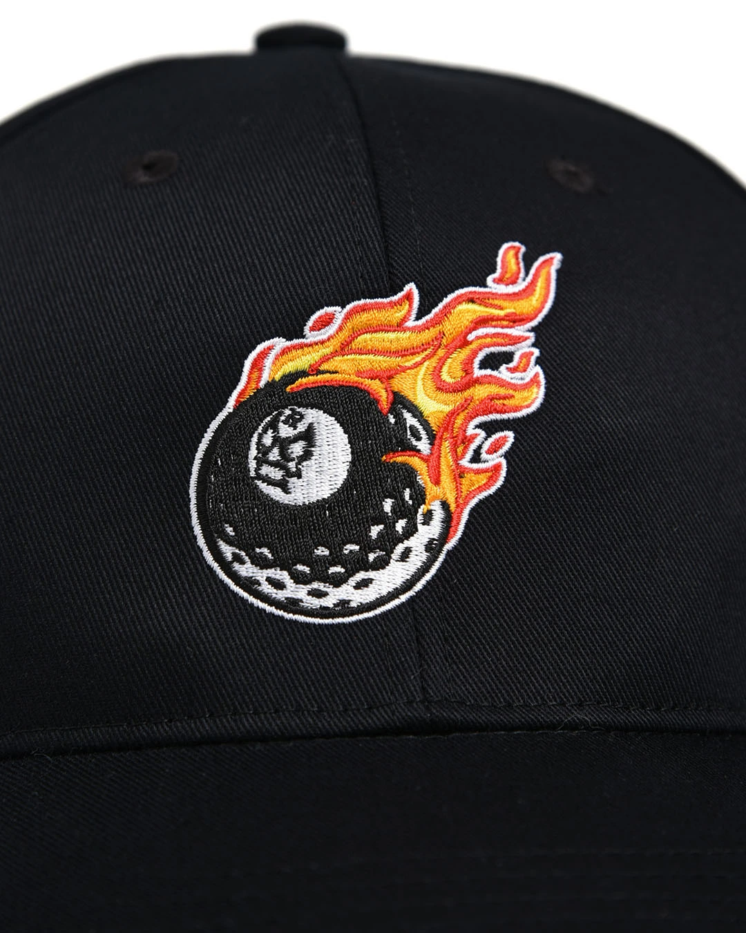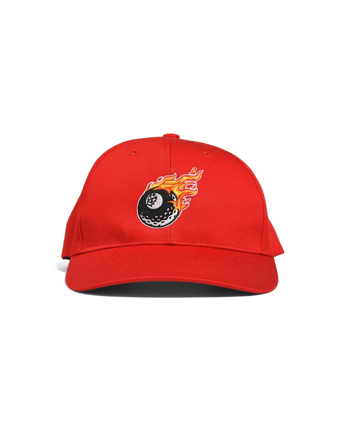 シンプルなソリッドカラーのボディーに、エイトボールグラフィックの刺繍が映えるキャップ。